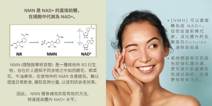 NMN(煙酰胺單核苷酸)是一種被認為可以支持細胞能量代謝和延緩衰老的補充劑。
