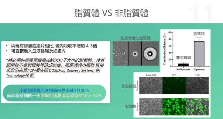 脂質體傳遞:選擇那些採用脂質體包裹技術的NMN產品,以確保NMN能有效地被運送到細胞內部,轉化為NAD+。脂質體能夠增強生物利用度,提升NMN的效果。