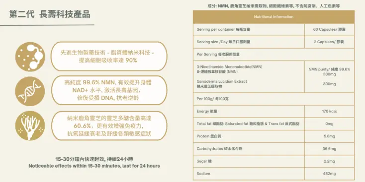 性價比:在眾多NMN產品中比較價格和劑量,選擇最具性價比的產品,而不僅僅是追求低價。例如加入珍貴成份:- 東方百草之王靈芝,完美結合NMN,功能協同倍增。