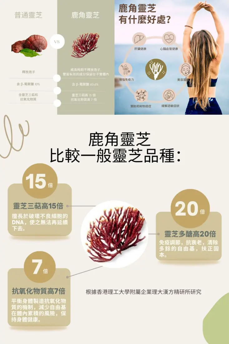 • 抗氧化作用:靈芝含有多種抗氧化成分,可以幫助減少氧化壓力,與NMN的代謝促進作用相輔相成,促進細胞健康。